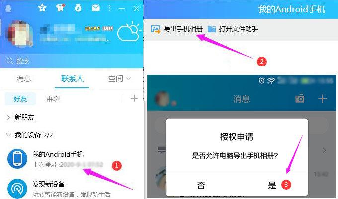 今天教你一招不用数据线、不用安装第三方其他软件,怎样把手机照片传到电脑、手机图片最简单的方法传到电脑上,可视化各种便捷的预览等,那就是我们国民级社交软件QQ,只需要电脑端和手机端同时登录QQ即可。(以下步骤已默认您安装了较新的QQ软件并以安卓手机系统为例),手机导出照片及视频的方法很多,这只是其中的一种不占用手机和电脑额外容量(不需要在QQ或微信上发到电脑端,再反复保存占用容易。)